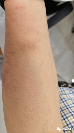 柴先生,男,42歲。日常生活中受到皮疹困擾持續2-3年,左小臂皮膚出現小片狀紅色,伴瘙癢,形狀不規則,邊界欠清,局部可見皮膚破損。2021年7月皮疹病情加重,服用中藥調理,反復發作。